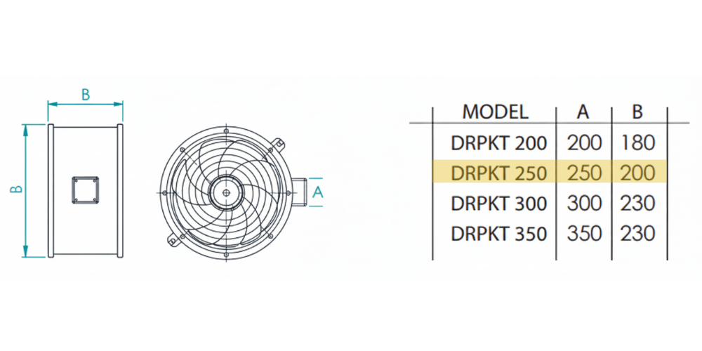 Aksiyal fan prensibi ile çalışan DRPKT serisi, hava akışını kanal doğrultusunda ileterek düşük basınç kayıplarıyla verimli bir havalandırma sağlar. Bu özelliği sayesinde özellikle kısa ve orta mesafeli kanal hatlarında, yüksek hava değişim ihtiyacı olan alanlar için ideal bir çözümdür.