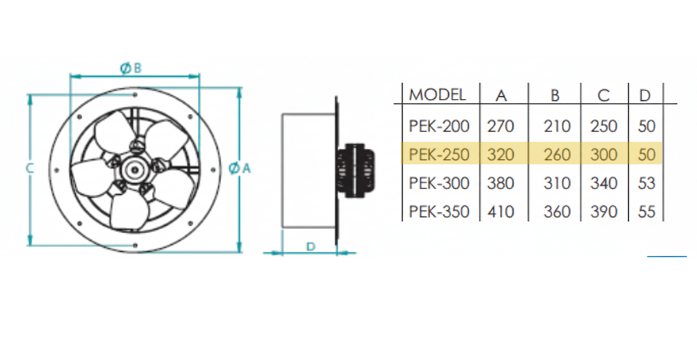 PEK Serisi Duvar Tipi Aksiyal Aspiratörler, küçük ve orta ölçekli kapalı alanlarda etkili havalandırma sağlamak amacıyla geliştirilmiş, ekonomik ve verimli endüstriyel fan çözümleridir. Kompakt yapısı, düşük enerji tüketimi ve duvar montajına uygun tasarımı sayesinde birçok farklı sektörde güvenle kullanılmaktadır.