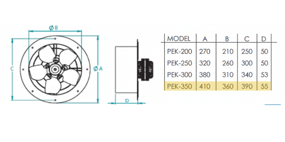 PEK Serisi Duvar Tipi Aksiyal Aspiratörler, küçük ve orta ölçekli kapalı alanlarda etkili havalandırma sağlamak amacıyla geliştirilmiş, ekonomik ve verimli endüstriyel fan çözümleridir. Kompakt yapısı, düşük enerji tüketimi ve duvar montajına uygun tasarımı sayesinde birçok farklı sektörde güvenle kullanılmaktadır.