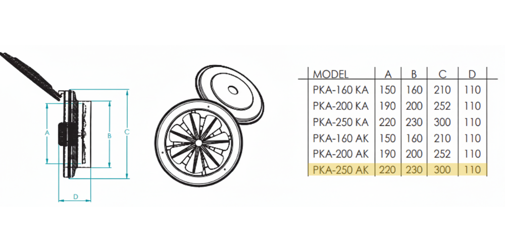 PKA-KA (Kapaklı) modeller, fan kapalıyken dış ortamdan gelebilecek rüzgâr, toz ve yabancı maddelerin iç ortama girişini önleyen kapak mekanizmasıyla öne çıkar.