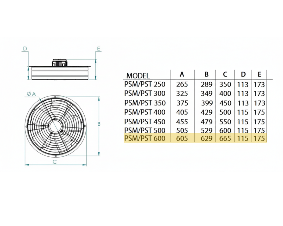 Fanexfan PSM 600 Aksiyal Sanayi Aspiratörü (Monofaze, 605 mm), endüstriyel alanlarda yüksek hava sirkülasyonu sağlamak amacıyla tasarlanmış, dayanıklı ve verimli bir havalandırma çözümüdür.
